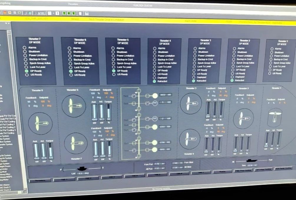 “夢想”號在全球首次同時將蓄能技術(shù)和閉環(huán)電網(wǎng)應(yīng)用于DP-3級動力定位系統(tǒng),不僅能為海上鉆探作業(yè)提供強有力的保障,而且使全船綜合能耗降低15%。