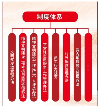 把精神文明建設(shè)作為全面推進單位發(fā)展的重要保障,與中心工作同謀劃、同部署、同檢查、同落實,通過體系化、制度化、規(guī)范化建設(shè),形成“黨委統(tǒng)一領(lǐng)導(dǎo),文明辦歸口管理,職能部門協(xié)同負責(zé),全員共同參與”的工作格局。建立法治誠信建設(shè)、行為文明規(guī)范、創(chuàng)建考核與評先等管理辦法,形成科學(xué)完備的制度體系,推動創(chuàng)建工作科學(xué)化、制度化、規(guī)范化。