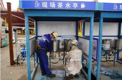 江南造船為一線員工送棒冰、鹽汽水、酸梅湯、水壺等物資,食堂開(kāi)設(shè)綠豆湯專(zhuān)供窗口,生產(chǎn)區(qū)域設(shè)置115個(gè)大麥茶供應(yīng)點(diǎn),遍布各車(chē)間、碼頭、休息區(qū);提前策劃,按就近、共享以及區(qū)域化管理原則,新增職工小家,開(kāi)放辦公樓宇和食堂,設(shè)置高溫休息點(diǎn)。