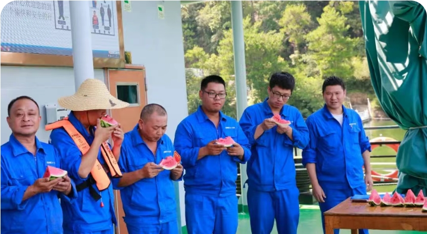 7月杭州的氣溫已經(jīng)逼近40℃,千島湖上更是熱浪灼人。試驗平臺的“燜爐”和“鐵板”上,不少項目組正在追趕進(jìn)度,大家都是汗如雨下。七一五所黨委為奮戰(zhàn)在科研生產(chǎn)一線的員工送去防暑物資,傳遞對員工的關(guān)懷和鼓勵。