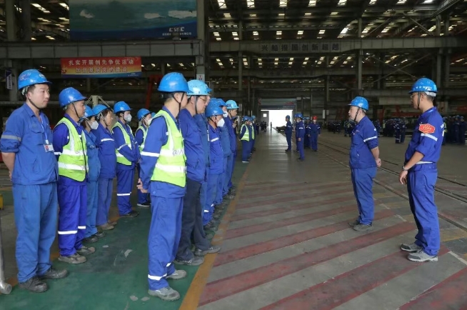一點名,二講評,三交底,四確認,五承諾。北海造船制作了班前會“五步法”指導視頻及手冊,以直觀的聲畫形式,精準指導各個班組規(guī)范召開班前會。目前,北海造船1000余個班組已全面落實班前會“五步法”管理要求。