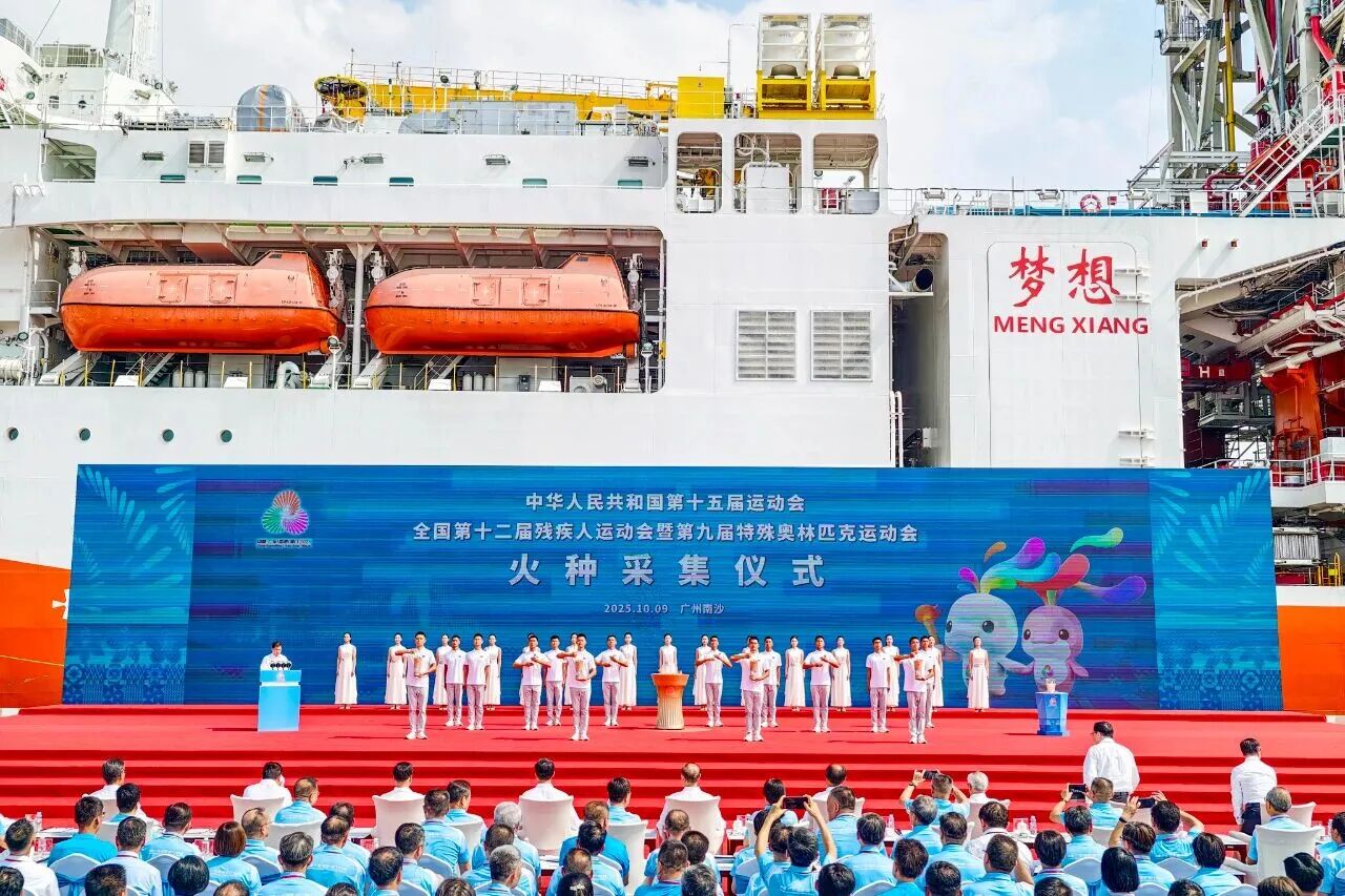 近日,在大洋鉆探船“夢(mèng)想”號(hào)的見(jiàn)證下,第十五屆全國(guó)運(yùn)動(dòng)會(huì)和全國(guó)第十二屆殘疾人運(yùn)動(dòng)會(huì)暨第九屆特殊奧林匹克運(yùn)動(dòng)會(huì)火種采集儀式在廣州舉行。