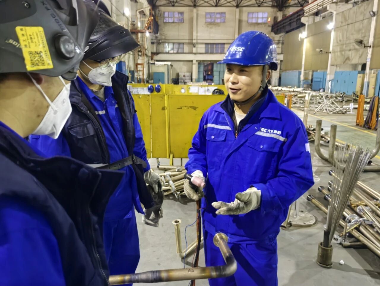 在大連造船的生產(chǎn)現(xiàn)場,全國技術(shù)能手、遼寧省突出貢獻(xiàn)高技能人才王玉坤,手持焊槍圍站在工友中間,用一線工匠的樸實(shí)話語宣講黨的二十屆四中全會精神,用身邊事解讀全會精神,讓全會精神在造船生產(chǎn)一線落地生根。