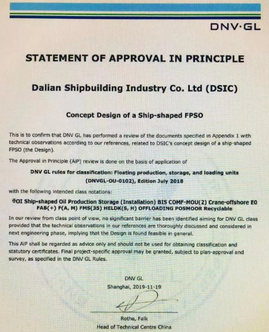 ????11月20日,大船集團在總部舉行了“15.5萬噸穿梭油船”和“通用型FPSO”設(shè)計AIP證書頒發(fā)儀式,兩型新產(chǎn)品獲得DNV·GL原則性認(rèn)可。
