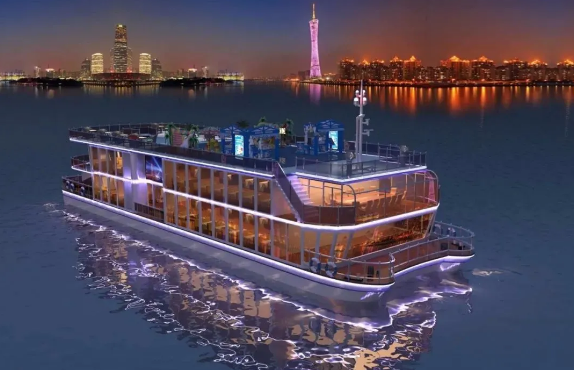 ????280客位珠江夜游船總長38.8米,型寬12.0米,型深3.2米,航速10.0節(jié),是粵港澳大灣區(qū)首艘入級(jí)商業(yè)運(yùn)營新能源客船,外觀設(shè)計(jì)新穎獨(dú)特,純電池動(dòng)力突顯低噪音、低排放、綠色環(huán)保的優(yōu)勢(shì),對(duì)于推動(dòng)粵港澳大灣區(qū)旅游和交通產(chǎn)業(yè)的綠色發(fā)展具有重要意義。