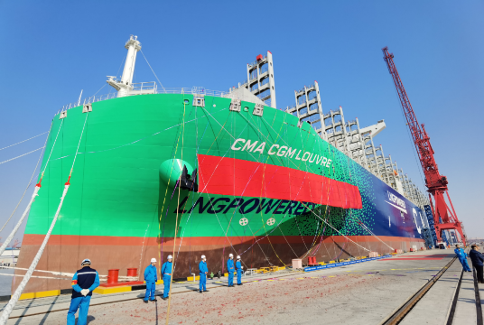 12月22日,中國船舶集團旗下江南造船、 七〇八所攜手中船貿(mào)易為法國達飛集團建造的23000TEU超大型雙燃料集裝箱船,“達飛盧浮宮”號正式命名交付。該船是中國船舶集團承建法國達飛集團9艘23000TEU系列船中的第4艘,也是江南造船交付的第2艘。