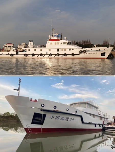 2020年12日26日,“中國漁政002”和“中國漁政003”正式交接兩艘船作為旗艦,自2021年1月1日起開展長江“十年禁漁”漁業(yè)執(zhí)法和保護(hù)。兩艘200噸級漁政船為姊妹船