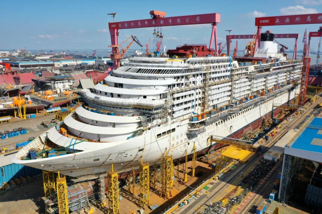 國(guó)產(chǎn)首制大型郵輪總段制作暨全船搭載完工,是郵輪建造過程中的重大里程碑節(jié)點(diǎn),為年底實(shí)現(xiàn)整船起浮打下了堅(jiān)實(shí)的基礎(chǔ)。