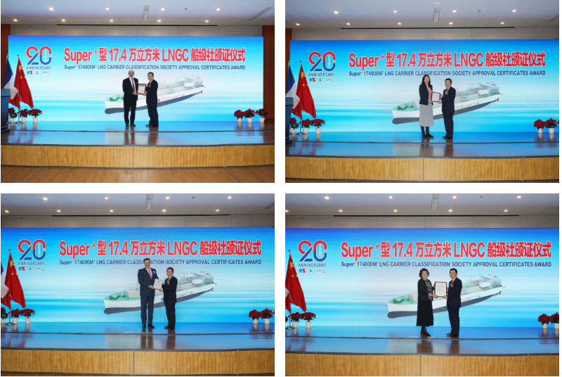 12月16日,由中國(guó)船舶集團(tuán)旗下滬東中華與法國(guó)GTT公司聯(lián)合研發(fā)的全球最新一代“長(zhǎng)恒系列”17.4萬(wàn)立方米液化天然氣(LNG)運(yùn)輸船獲得美國(guó)船級(jí)社(ABS)、法國(guó)船級(jí)社(BV)、英國(guó)勞氏船級(jí)社(LR)、DNV等四家國(guó)際著名船級(jí)社頒發(fā)的船型設(shè)計(jì)通用認(rèn)可(GDA)、入級(jí)預(yù)先認(rèn)可(PCA)等證書(shū)。標(biāo)志著這款集最新設(shè)計(jì)理念、最優(yōu)技術(shù)裝備、最強(qiáng)環(huán)保性能、最具前瞻性于一身的“長(zhǎng)恒系列”船型達(dá)到可以實(shí)船建造的狀態(tài)。這是世界LNG船發(fā)展史上的重大事件,更是中國(guó)在LNG船研發(fā)設(shè)計(jì)領(lǐng)域從跟跑、并跑到領(lǐng)跑進(jìn)程中一座重要的里程碑。