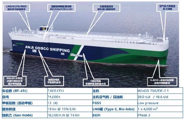 該船的關(guān)鍵性設(shè)備系統(tǒng)(WinGD X-DF主機及iCER系統(tǒng)、LNG圍護和供氣系統(tǒng)、滾裝設(shè)備系統(tǒng))均采用中國船舶集團旗下公司或科研院所產(chǎn)品,顯著提升了該新造船項目的核心設(shè)備國產(chǎn)自主化率,在我國大型滾裝船型建造史上具有里程碑意義,建成交付后將成為中國最大、世界領(lǐng)先、國產(chǎn)化程度最高的遠洋汽車運輸船,能夠積極滿足上汽集團以及國內(nèi)其它自主、外資品牌不斷增長的出口業(yè)務(wù)需求,也將加快推動高含金量“中國智造”走向全球。
