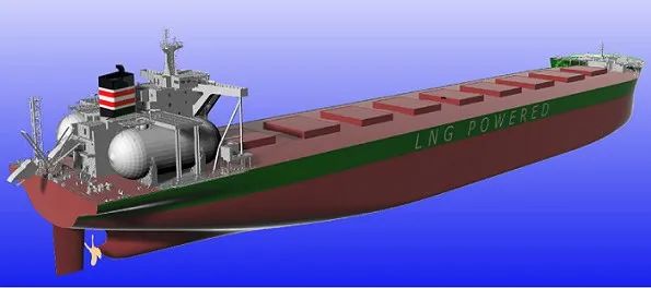 18萬(wàn)噸好望角型雙燃料散貨船由外高橋造船自主設(shè)計(jì),采用LNG燃料和傳統(tǒng)燃料油驅(qū)動(dòng),共配置兩個(gè)C型LNG燃料罐,可一次性滿足完成中國(guó)至澳大利亞航線兩個(gè)來(lái)回或中國(guó)至巴西航線一個(gè)來(lái)回的路程需求。在LNG燃料模式下,該船基本消除顆粒物和硫化物的排放,滿足國(guó)際海事組織IMO第四階段規(guī)范要求,具有綠色、環(huán)保、節(jié)能、安全等顯著特色。