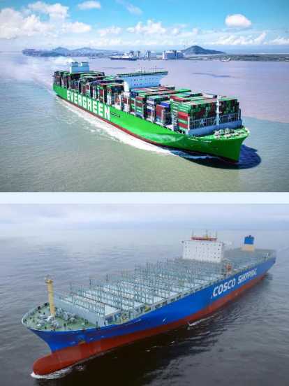 該船總長399.99米,型寬61.5米,型深33.2米,甲板面積相當于近4個標準足球場,最大堆箱層數(shù)可達25層,相當于22層樓的高度,可承載24萬多噸貨物,一次可裝載創(chuàng)紀錄的24116只標準集裝箱,是目前全球裝箱量最大的集裝箱船。