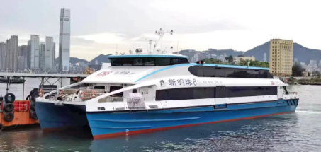 8月8日,中國(guó)香港新渡輪500客位混合動(dòng)力噴水推進(jìn)碳纖維高速船“新明珠6”號(hào)在廣州舉行交船儀式。該船由中國(guó)船舶集團(tuán)廣州公司批量承接,是中國(guó)香港首艘碳纖維混合動(dòng)力高速客船,廣州公司總承包了該項(xiàng)目的11艘船舶。