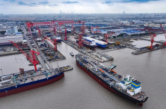 12月,中國船舶集團旗下外高橋造船的碼頭船塢依舊是熱火朝天的繁忙景象。上周,外高橋造船相繼完成新船命名、出塢、入塢和試航等八個生產(chǎn)大節(jié)點,向著全面超額完成年度生產(chǎn)目標發(fā)起“總攻”。