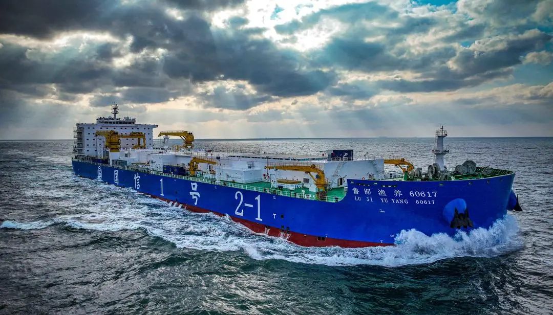 該船配備15個大型養(yǎng)殖艙,總艙容達9.6萬立方米,通過養(yǎng)殖水體擴容、海水交換系統(tǒng)優(yōu)化、電力負荷調(diào)整及光伏發(fā)電系統(tǒng)引入等技術(shù)升級,大幅提升了自動化、智能化水平和經(jīng)濟性,同時具備多要素協(xié)同養(yǎng)殖試驗功能,為解決傳統(tǒng)漁業(yè)資源衰退及近海養(yǎng)殖環(huán)境問題提供了新路徑。其自主航行和深層取水系統(tǒng)可規(guī)避自然災(zāi)害,優(yōu)化養(yǎng)殖環(huán)境,推動海洋漁業(yè)向智能化、現(xiàn)代化轉(zhuǎn)型,為海洋強國戰(zhàn)略和漁業(yè)產(chǎn)業(yè)升級注入新動能。