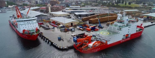 ????當(dāng)?shù)貢r間11月7日上午,搭載107名中國第36次南極考察隊員的“雪龍”號停靠澳大利亞霍巴特港口,與先行靠港的“雪龍2”號正式匯合。
