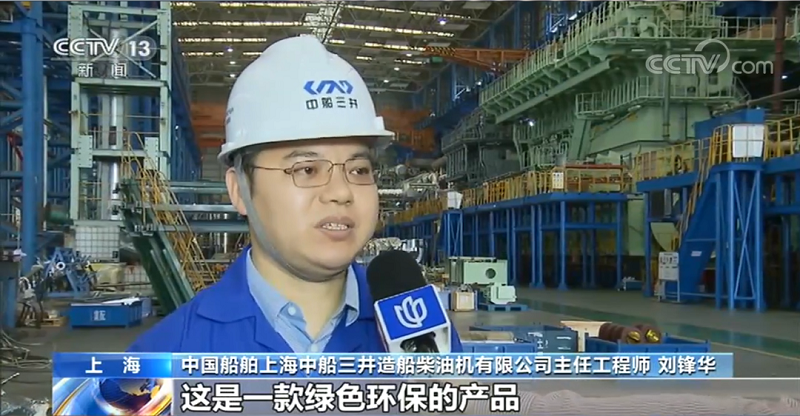 ????中國(guó)船舶上海中船三井造船柴油機(jī)有限公司主任工程師 劉鋒華:尺寸最大,達(dá)到了5層樓那么高,功率達(dá)到了63800多千瓦,功率也是最大的。這是一款綠色環(huán)保的產(chǎn)品,使用燃?xì)膺\(yùn)行時(shí)氮氧化物的排放不到常規(guī)發(fā)動(dòng)機(jī)的十分之一,硫氧化物和顆粒物的排放也是非常好的,不用裝任何后處理設(shè)備,都可以滿足IMO(國(guó)際海事組織)最新的排放法規(guī)要求。
