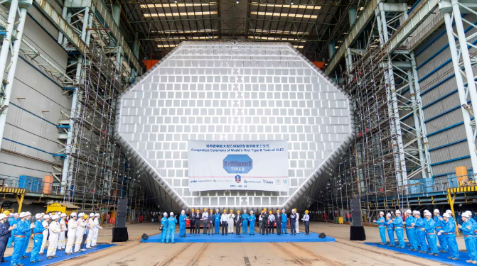 日前,全球最大B型菱形液貨艙在江南造船完工,將被用于世界首制99000立方米超大型液化乙烷運輸船(VLEC)。江南造船自主研發(fā)的B型艙 若配置不同的艙體材料和絕緣系統(tǒng) ,可適用于裝載不同溫度的液化氣貨品。