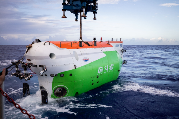 △潛入海底萬米的深潛器“奮斗者號”