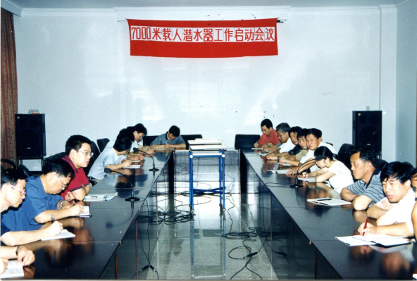 △7000米載人潛水器總體組及總師組成立大會,發(fā)言者為徐芑南。
