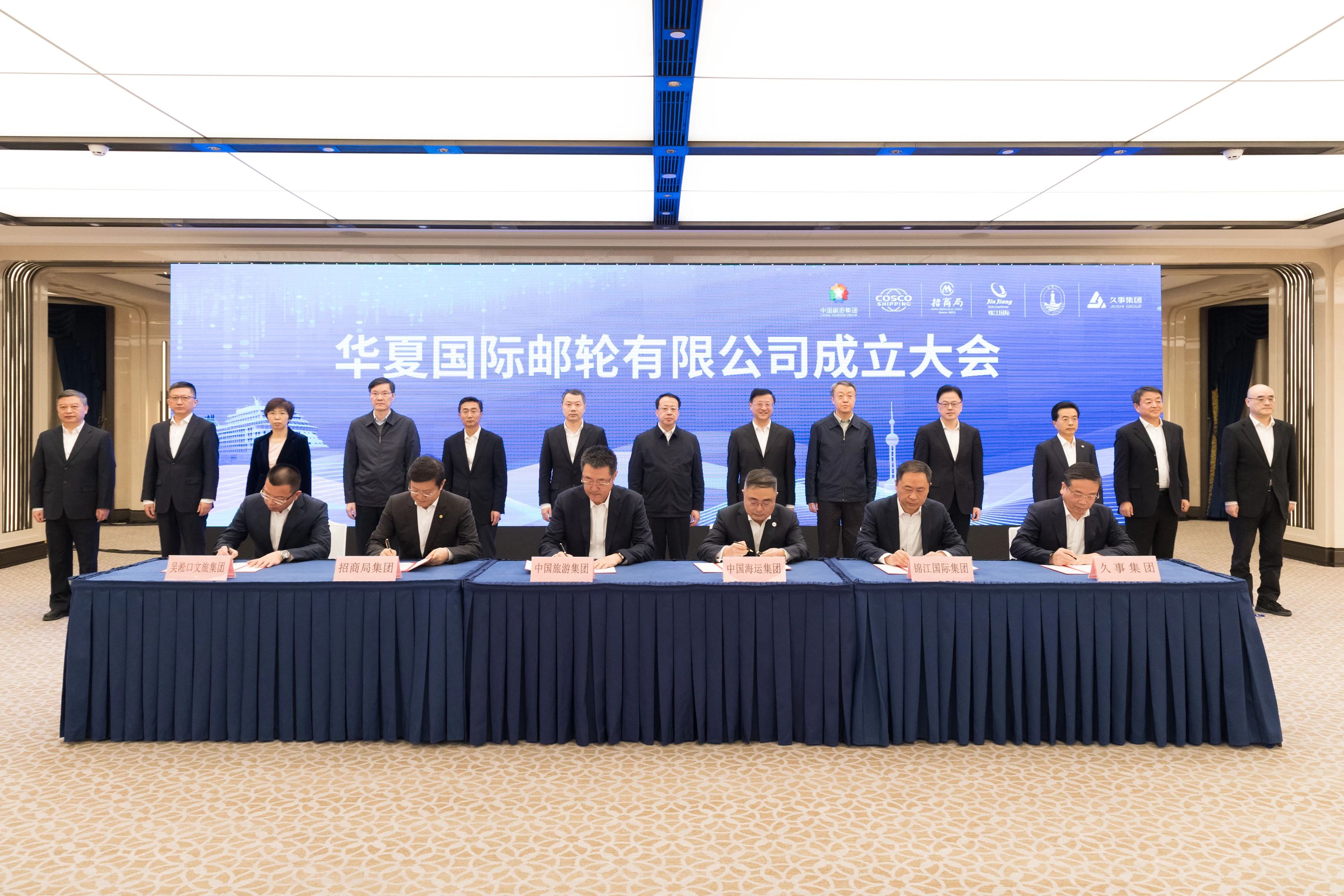 成立大會上,龔正、陳寅為華夏國際郵輪有限公司揭牌。中國旅游集團、中國遠洋海運集團、招商局集團、錦江國際集團、上海久事集團、吳淞口文旅投資集團相關(guān)負(fù)責(zé)同志簽約。