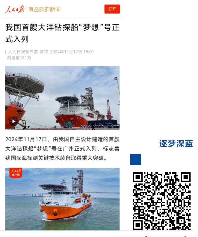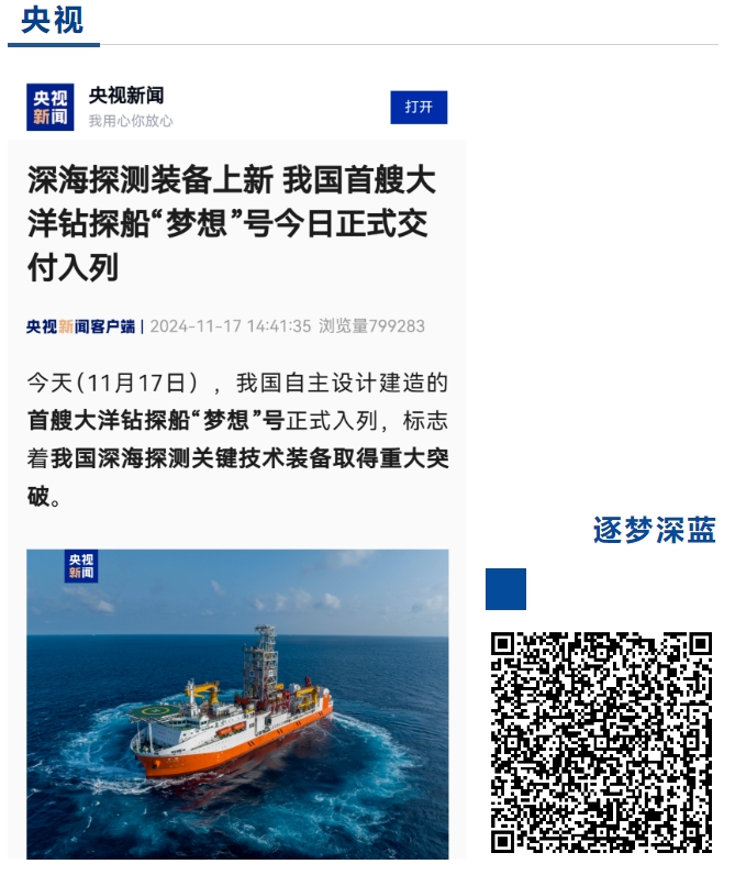 11月17日,中國船舶集團自主設計建造的我國首艘大洋鉆探船“夢想”號在廣州南沙交付入列,人民日報、新華社、央視等媒體的記者來到交付現(xiàn)場進行報道 。