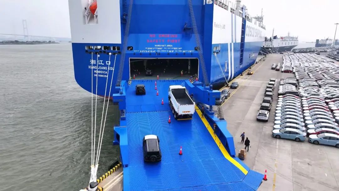 2024年12月14日, LNG雙燃料汽車運(yùn)輸船“湘江口”輪首航靠泊廣州南沙汽車口岸,搭載一汽、吉利、奇瑞、長(zhǎng)城、上汽、比亞迪等10余個(gè)國(guó)產(chǎn)品牌的近4000臺(tái)各型車輛出口駛往波斯灣市場(chǎng)?!跋娼凇陛喌募尤?,將更快更好地服務(wù)“一帶一路”經(jīng)貿(mào)往來,為全球汽車海運(yùn)市場(chǎng)注入新的活力。