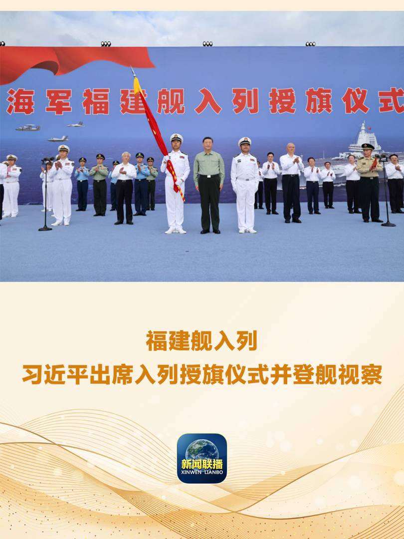 我國(guó)第一艘電磁彈射型航空母艦福建艦入列授旗儀式5日在海南三亞某軍港舉行。中共中央總書(shū)記、國(guó)家主席、中央軍委主席習(xí)近平出席入列授旗儀式并登艦視察。