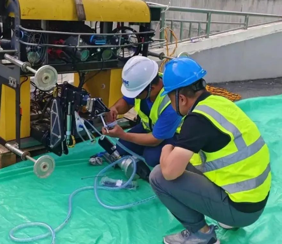 項目組成員克服高溫高濕的環(huán)境和艱苦條件,歷時近十天圓滿完成有關(guān)試驗任務(wù)。本次外場試驗,充分驗證并優(yōu)化了七〇二所在水下工程領(lǐng)域的核心技術(shù),包括水下裂縫檢測、水下裂縫修復(fù)、水下嵌填、水工建筑物表面清理及水下插拔等關(guān)鍵技術(shù)的實際應(yīng)用效果與操作效率。