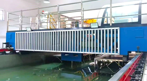 中山大學(xué)“拖曳水池建造” 項目包含了拖曳水池拖車、軌道系統(tǒng)、造消波系統(tǒng)、造風(fēng)系統(tǒng)等關(guān)鍵試驗設(shè)備。拖車實現(xiàn)從0.02米/秒到8米/秒的高精度、高速比調(diào)速,滿足拖曳水池流速儀標定和船舶試驗的雙重需求;造風(fēng)系統(tǒng)實現(xiàn)了風(fēng)譜模擬能力。