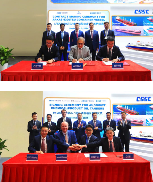 此次展會(huì)上,集團(tuán)公司有關(guān)成員單位負(fù)責(zé)人率隊(duì)赴展會(huì)開展重點(diǎn)船海項(xiàng)目經(jīng)營洽談并拜訪當(dāng)?shù)睾椭苓厙抑饕蛻?。集團(tuán)公司以“高端綠色、領(lǐng)跑未來”為參展主題,展臺(tái)設(shè)置了集團(tuán)總體區(qū)、高端綠色船舶區(qū)、先進(jìn)動(dòng)力配套區(qū)共3個(gè)展示區(qū)域,重點(diǎn)展示了首艘國產(chǎn)大型郵輪、27.1萬立方米超大型LNG(液化天然氣)運(yùn)輸船、10800車LNG雙燃料汽車運(yùn)輸船、全球首艘LNG雙燃料VLCC(超大型油船)、21萬噸氨燃料散貨船、9.3萬立方米超大型全冷式液化氣船等一系列技術(shù)含量高、全球競爭力強(qiáng)的高端綠色船型,以及CPGC-WinGD 10X92DF-M甲醇雙燃料發(fā)動(dòng)機(jī)、船用供氣系統(tǒng)、船用碳捕捉系統(tǒng)、船舶新能源動(dòng)力系統(tǒng)解決方案等滿足IMO(國際海事組織)當(dāng)前和未來排放要求的先進(jìn)動(dòng)力配套設(shè)備,充分彰顯了中國船舶集團(tuán)的國際化品牌形象及引領(lǐng)國際船舶市場創(chuàng)新發(fā)展的澎湃動(dòng)力。