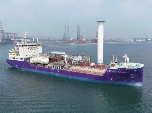 近日,中國船舶集團旗下大連造船為挪威北極光公司建造的全球首制7500立方米液態(tài)二氧化碳運輸船1號船完成柴油試航任務(wù)。