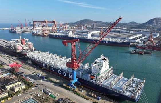 12月3日,中國(guó)船舶集團(tuán)青島北海造船與中船貿(mào)易作為聯(lián)合賣(mài)方,為達(dá)飛海運(yùn)建造的系列5500TEU集裝箱船“CMA CGM KAURI”號(hào)舉行命名交付儀式。該船是北海造船交付的第8艘5500TEU集裝箱船,也是北海造船年度交付的第19艘船。