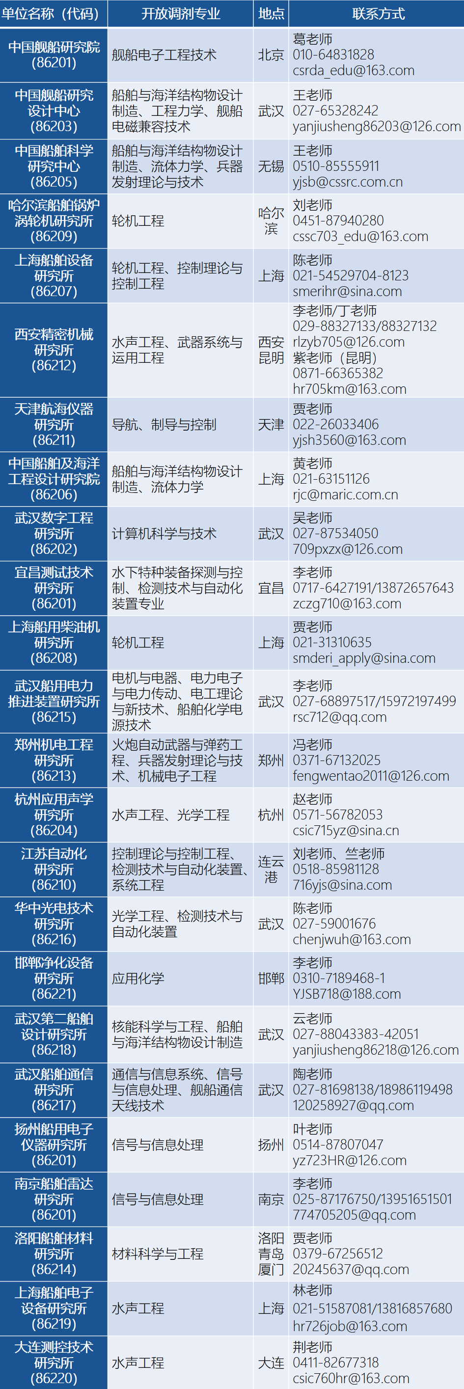 請考生將簡歷、本科成績單、初試成績單等材料打包(文件名以“姓名+初試總分+本科院校+本科專業(yè)+申請調(diào)劑培養(yǎng)單位+申請調(diào)劑專業(yè)”命名,如張三+345+哈爾濱工程大學(xué)+船舶與海洋結(jié)構(gòu)物設(shè)計(jì)制造+中國艦船研究設(shè)計(jì)中心+船舶與海洋工程)投遞調(diào)劑單位聯(lián)系人郵箱,由培養(yǎng)單位對滿足調(diào)劑條件考生擇優(yōu)篩選后,通知考生參加復(fù)試。